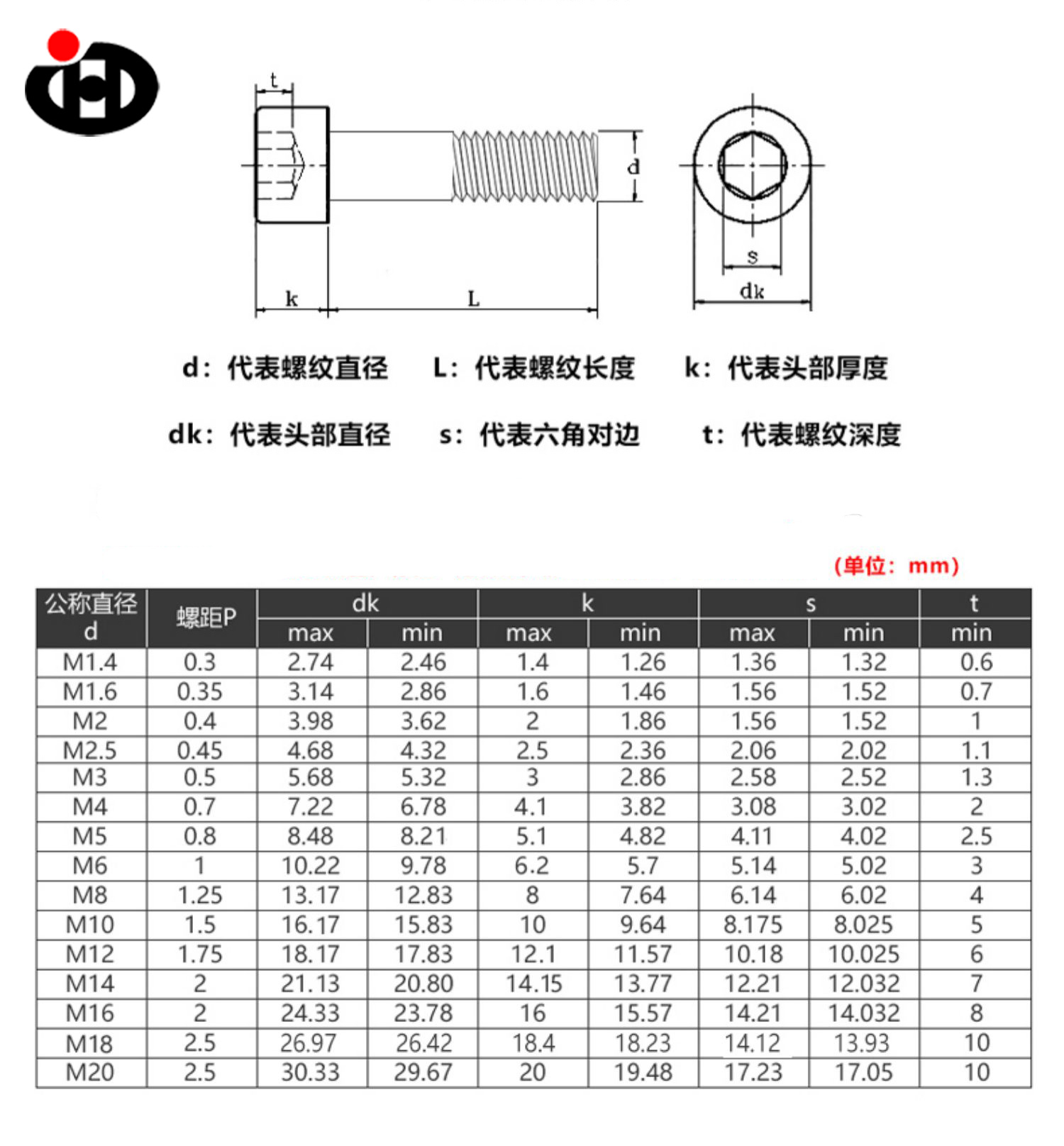 | আকার | M1.4-M20 METC |