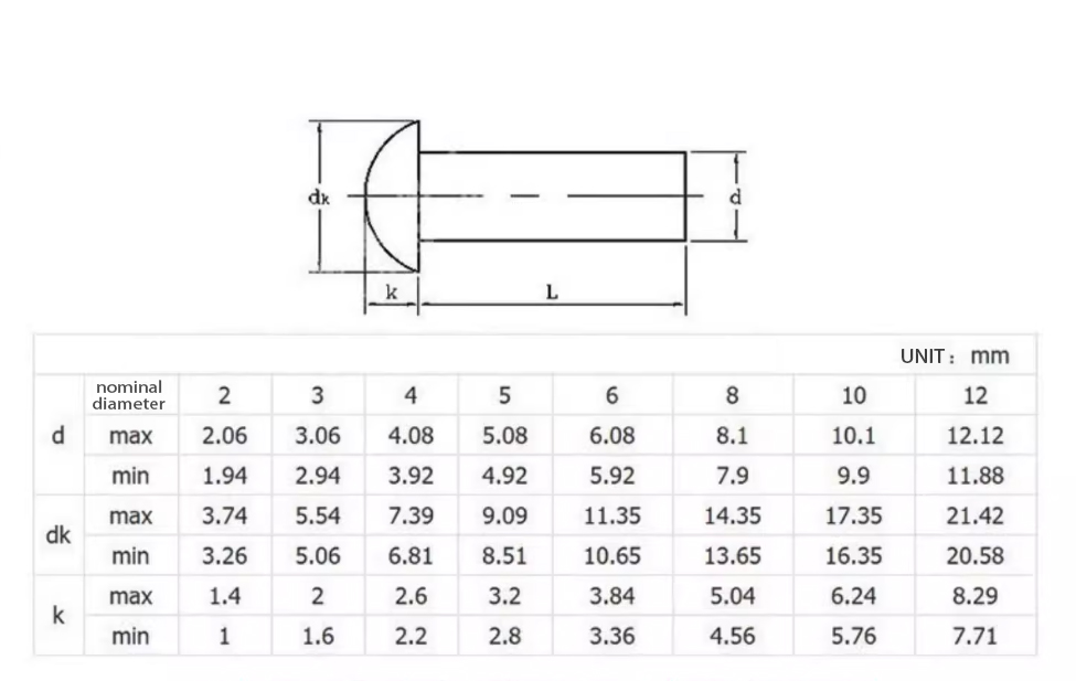 | নাম | অর্ধ-রাউন্ডের মাথা তামা রিভেট |