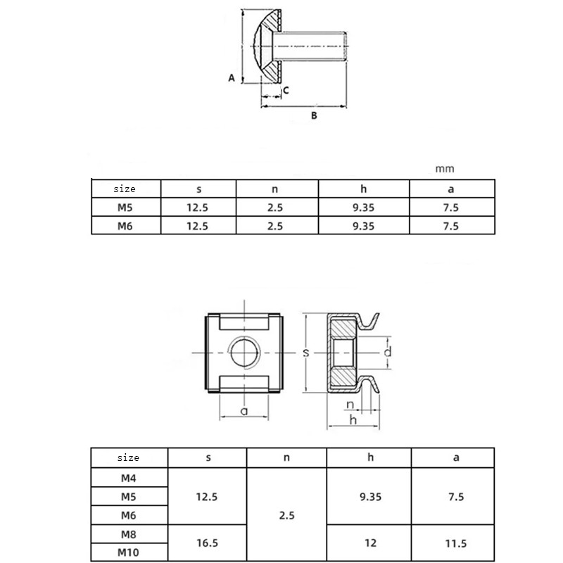 | মাপ | M3-M12Metc |