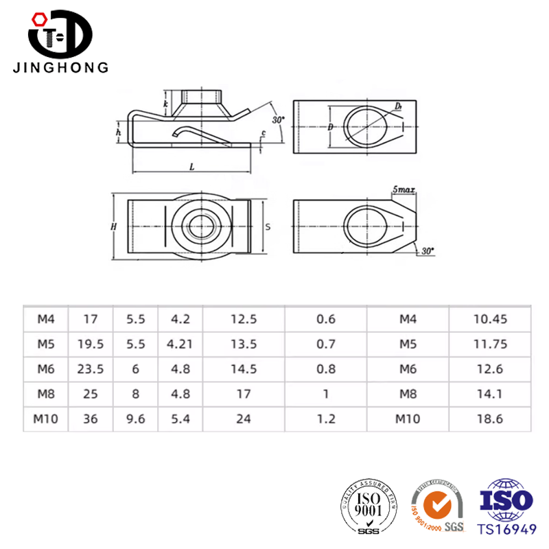 স্প্রিং নাট দ্রুত ইনস্টলেশনের জন্য ব্যবহৃত একটি ফাস্টেনার। এর বৈশিষ্ট্য হল এটি একটি স্প্রিং ক্ল্যাম্প দিয়ে সজ্জিত, যা স্লট রেলের যেকোনো অবস্থানে সহজেই স্লাইড এবং স্থির করা যায়, সমন্বয় এবং বিচ্ছিন্ন করার সুবিধা দেয়। এটি উচ্চ-শক্তির ম্যাঙ্গানিজ ইস্পাত দিয়ে তৈরি, যা জারা-প্রতিরোধী।