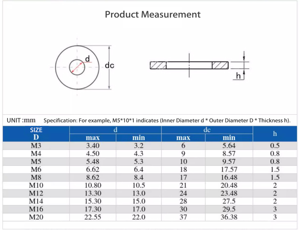 | আকার | M3-M20METC |