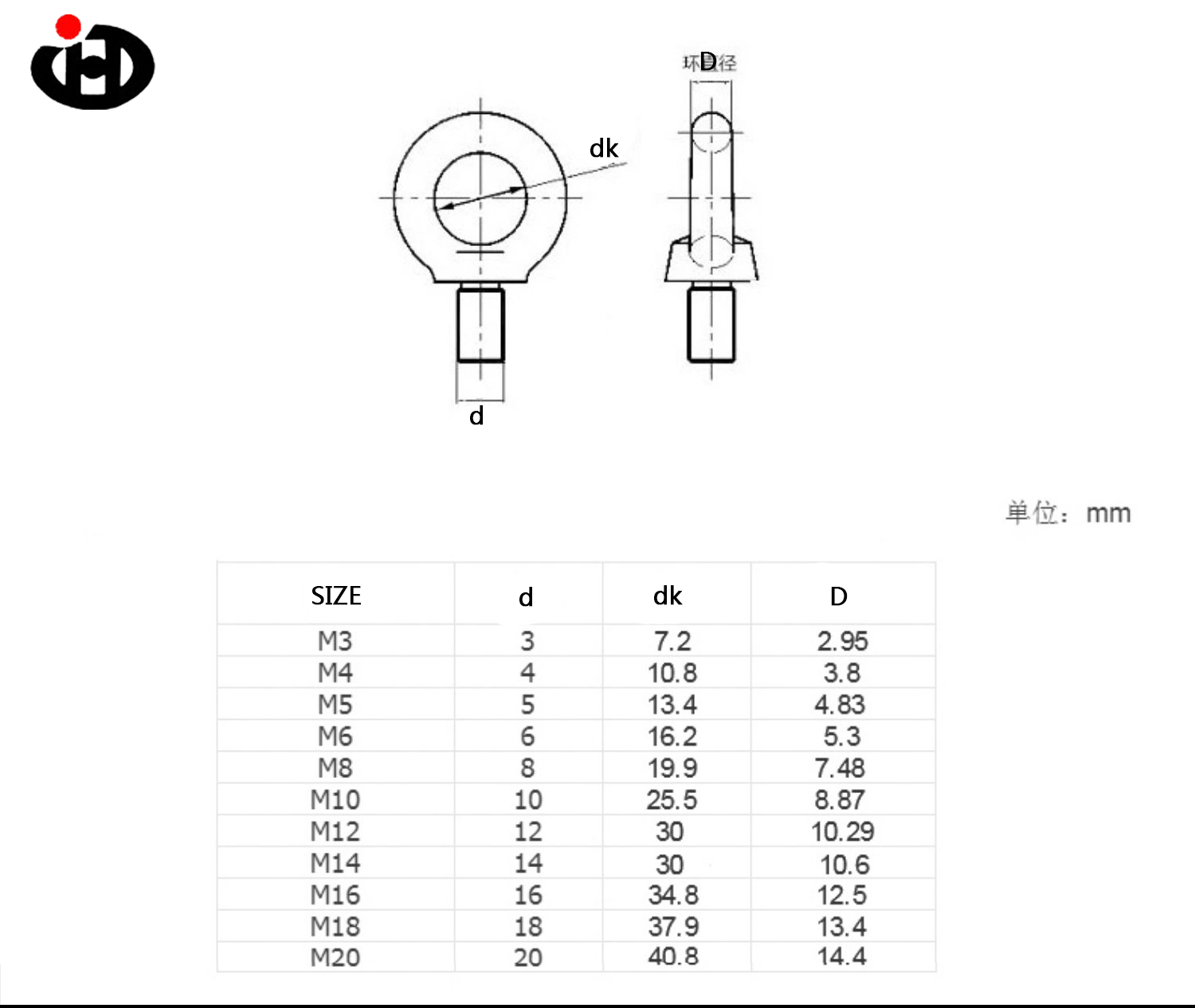 চোখের বল্টগুলি সাধারণত স্থায়িত্ব এবং লোড-ভারবহন ক্ষমতা নিশ্চিত করতে উচ্চ-শক্তি ইস্পাত দিয়ে তৈরি হয়। আইবোল্টের একটি থ্রেডযুক্ত অংশ রয়েছে যা সুরক্ষিতভাবে সামঞ্জস্যপূর্ণ কাঠামো বা উপাদানগুলিতে স্ক্রু করা যায়। গর্ত বা বল্টের শীর্ষে থাকা রিংটি হুকস, শেকলস বা স্লিংগুলির মতো বিভিন্ন উত্তোলন হার্ডওয়্যারকে সামঞ্জস্য করার জন্য ডিজাইন করা হয়েছে। জিংক ধাতুপট্টাবৃত আই বোল্টস স্ক্রুফিক্স সাধারণত প্রস্তুতকারকের চিহ্নিতকরণ, উপাদান গ্রেড এবং লোড-ভারবহন ক্ষমতা সহ প্রাসঙ্গিক তথ্য সহ লেবেলযুক্ত। এই আইবোল্টগুলির নির্দিষ্ট লোড ক্ষমতা রয়েছে এবং সুরক্ষা নিশ্চিত করতে অবশ্যই নির্দিষ্ট ওয়ার্কিং লোড রেঞ্জের মধ্যে ব্যবহার করা উচিত।